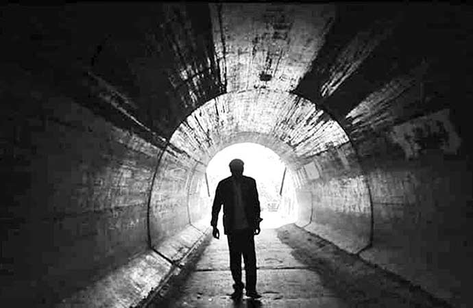 In part due to epics like War and Peace mentioned earlier, and also in no small part due to famous and iconic Russian filmmakers like Andrei Tarkovsky, who opts for very long and drawn-out scenes in his films and extended run times. The image that sticks out from his catalogue are the few extended sequence of travel in his 1979 film, Stalker. One towards the start of the film as the trio of men ride the rails out of the city and towards “The Zone.” The other comes later on in the film, after they’ve arrived at “The Zone” they walk through a tunnel for what feels like an eternity as we watch the back of one of the men’s head. Or, consider the shot of the men huddled in the destroyed building, sitting back-to-back as rain begins to pour in, and how it is long and lingering.