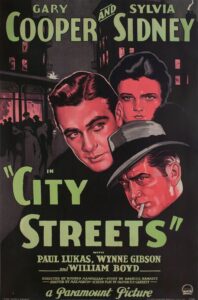 On Saturday, July 20th, our not-so-secret Speakeasy Cinema series, programmed by Raul Benitez, presents a screening of the trailblazing pre-code gangster film City Streets (1931) starring Gary Cooper and Sylvia Sidney.