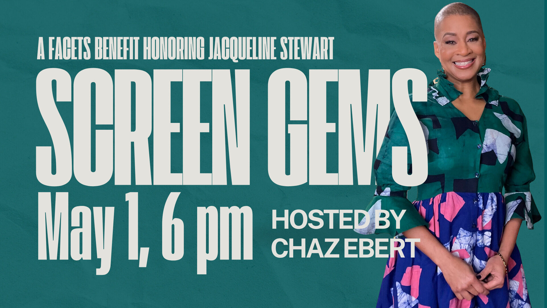 CHICAGO — FACETS is pleased to announce that their 2024 Screen Gems Benefit will honor Jacqueline Stewart, Director and President of the Academy Museum of Motion Pictures, on May 1, 2024, at the Arts Club of Chicago (201 E. Ontario St.). The event runs from 6:00–9:00 pm and includes an open bar, light dinner, online auction, and special conversation between Jacqueline Stewart and 2022 Screen Gems honoree Chaz Ebert. All proceeds will be directed to the Bross Scholarship Fund supporting under-resourced youth in Chicago. Tickets will go on sale Thursday, January 18, 2024, at 12:00 pm CST.