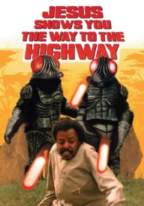 Jesus Shows You the Way to the Highway (2019) is director Miguel Llansó’s most ambitious film to date. This bonkers vision drops you through layers of computer-generated alternate realities, in which Stalin-masked viruses and leather-panted messiahs clash with human fly monsters, Ethiopian kung-fu masters, and a flabby, pixelated Batman. Can the pizza-obsessed CIA Agent Gagano (Daniel Tadesse) save the newly formed Beta-Ethiopia from a malevolent cyberintelligence threatening to rip reality apart?