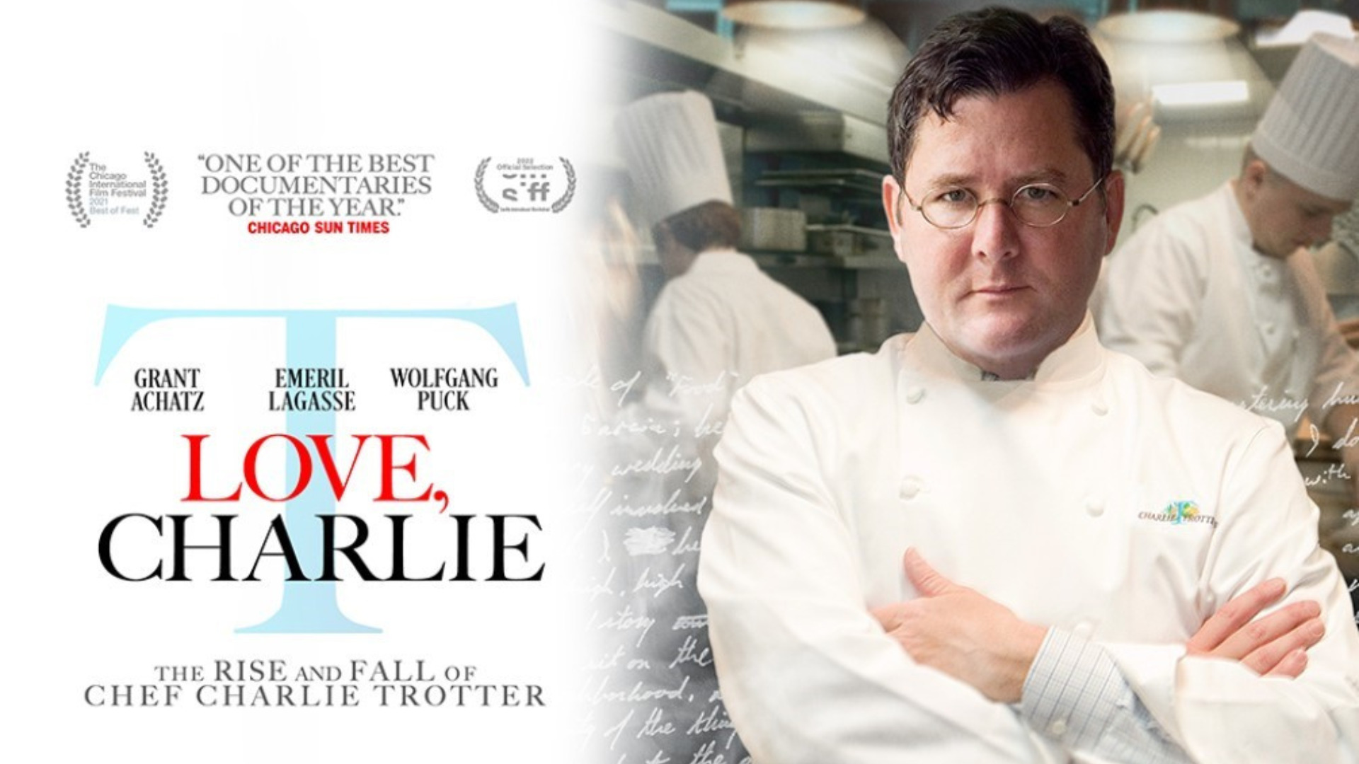 Charlie Trotter revolutionized American cuisine and paved the way for today’s celebrity chefs. His quest for excellence cost him everything. With exclusive access to never-before-seen archival materials, Love, Charlie is a searing portrait of what happens when a person’s identity becomes intrinsically tied to their work; and an epic cautionary tale of what can happen when that work fades away. Featuring Grant Achatz, Emeril Lagasse, Wolfgang Puck, Carrie Nahabedian and Norman Van Aken.